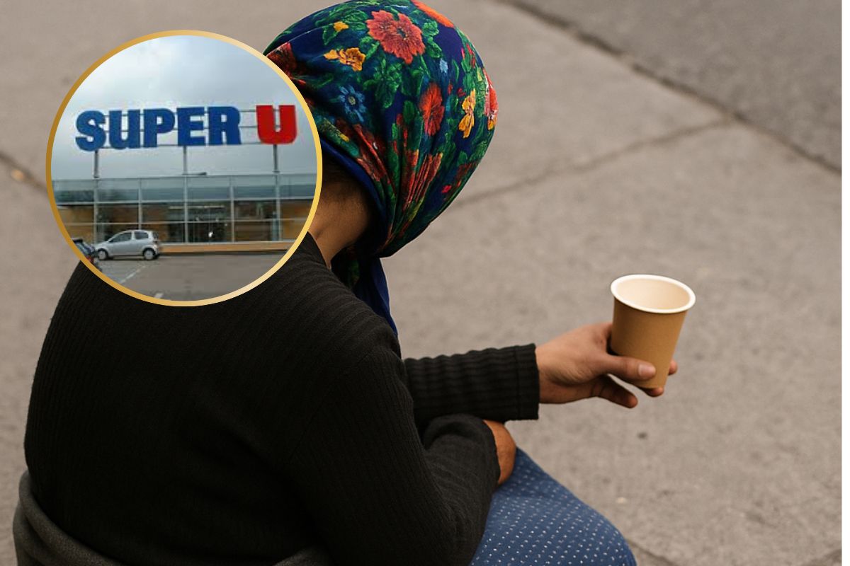 Depuis plusieurs semaines, une femme d’environ soixante ans, prénommée Violette, s’installe près de l’entrée du Super U de Saint-Brevin-les-Pins. Elle mendie en silence, souvent exposée au vent qui balaie le parking. Rien de plus ordinaire… jusqu’au jour où des panneaux surprenants ont fait leur apparition à l’intérieur du magasin.